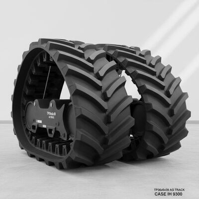 36"x6x39 jalur karet untuk CASE IH 9300 ketika mesin diterapkan sebagai scraper. spesifikasi ini memperbesar dasar pola tapak dan dengan demikian tetap tahan lama ketika memberikan traksi besar.